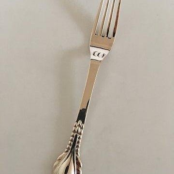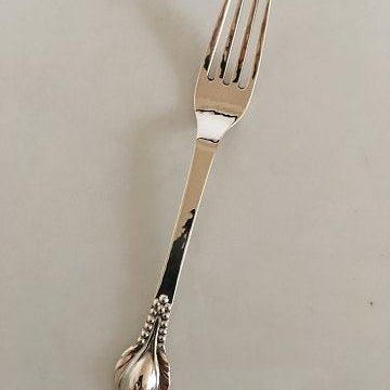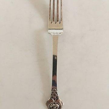 Evald Nielsen er en kendt dansk designer og disse over 100 år gamle kagegafler er i fin stand. Den ene kagegaffel er i sterling sølv, mens de andre dele er 830 tretårnet sølv. Der er 2 forskellige modeller, men begge er stemplet med nr 2.