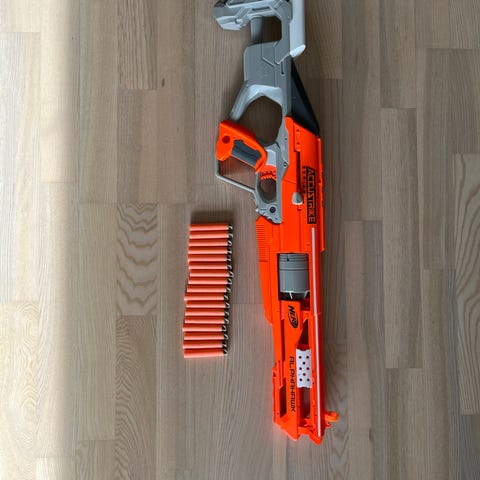 Nerf Ultra Blaster legetøjsgevær i hvid og orange farve. Intakt men mangler skud.