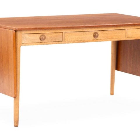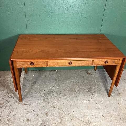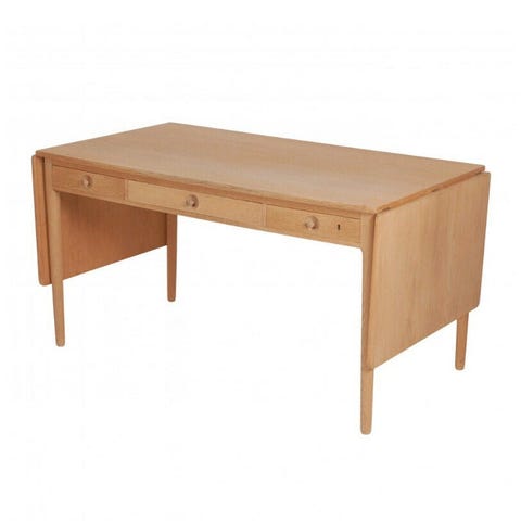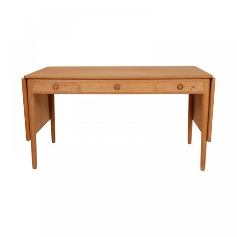 Skrivebord i eg. Fin stand med lidt brugsspor. Nøgle til skuffe mangler.