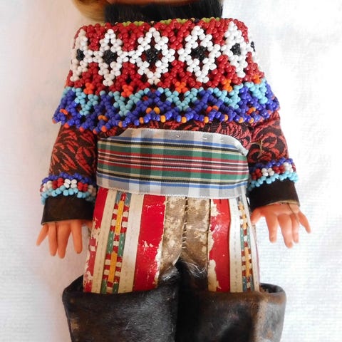 Grønlandsk kunsthåndværk Røde og sorte dekorative støvler i sælskind