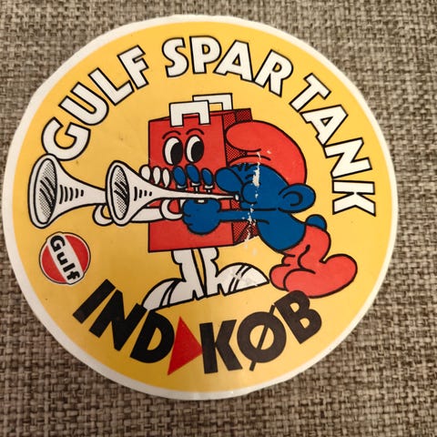 Vintage Gulf klistermærker med logo i farverne rød, blå og hvid. Ø 5 cm.