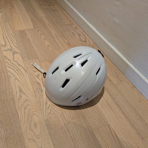 Mango Design skihjelm i lilla farve med størrelse cm 55-57. Den har ventilation og justerbar rem for bedre pasform. Små ridser hist og pist, men i fin stand.