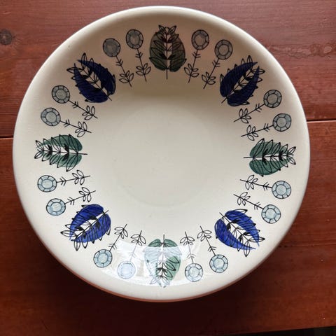 Sættet indeholder 6 stk. Desserttallerjeber.Tallerkenerne er lavet af porcelæn og har et dekorativt blomstermotiv i blå/grønne nuancer.