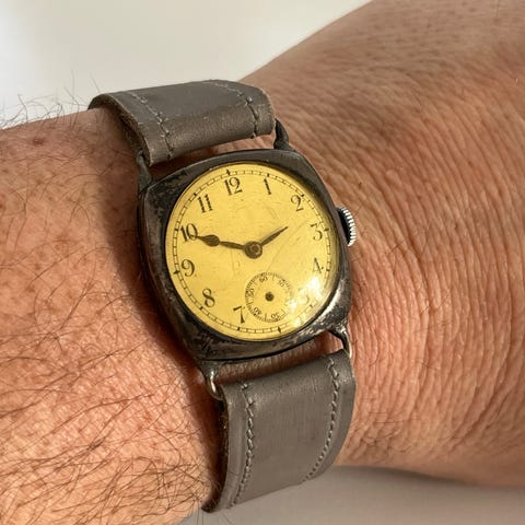 Uret går kun ganske kort når det trækkes op og har intet glas foran urskiven så det skal et smut til urmageren