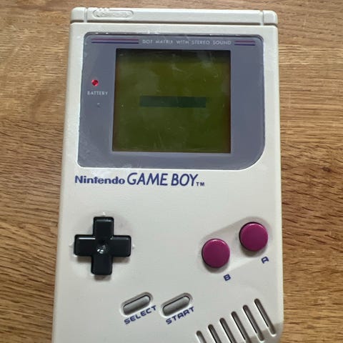 Nintendo Game Boy pocket håndholdt konsol i blå farve. Konsollen bruger Nintendo 8-bit teknologi og leveres med flere spil, herunder Donkey Kong og Mario. Inkluderer en sort Nintendo Game Boy taske til opbevaring og transport.