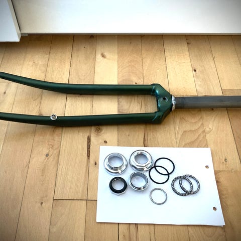 Komplet med headset / kronrørslejer / styrfitting til montering i stel