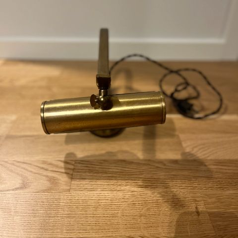 Gammel bordlampe eller klaverlampe i messing. Pæn stand uden buler. Trænger til pudsning og evt. ny ledning. Fungerer.