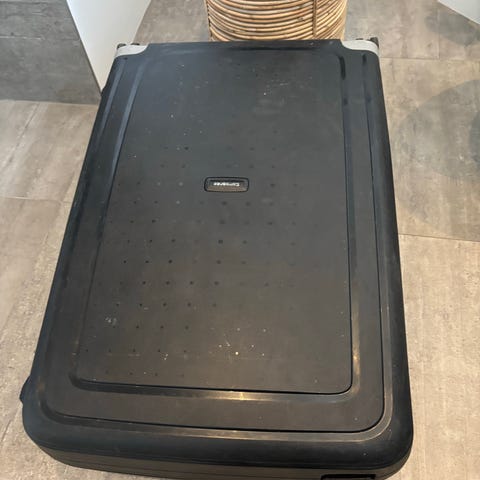 Samsonite trolley kuffert lavet af plast i sort farve. Designet til unisex brug med hjul og teleskophåndtag til nem transport. Indeholder lås med kode og rummeligt indre med fastgørelsesremme til sikring af indholdet.