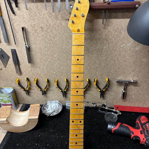 Super fin guitar, som bekræftede at en partscaster til fornuftig pris spiller og lyder fremragende. Men videre må den - for mange på lager.