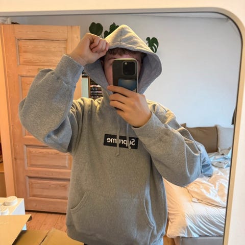 Super fed hoodie af mærket Supreme. Brugt meget lidt, så derfor i virkelig god stand. Fast pris.