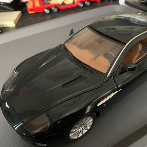 Aston Martin V12 Vanquish modelbil i mørk Pearl Green.