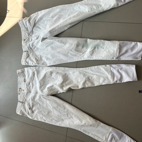Back2Back ridebukser fremstillet i en blanding af bomuld og spandex. Bukserne har et ternet mønster og er designet med forstærkede områder på indersiden af benene. De har lynlåslommer foran og elastisk talje for komfort. Materialet består af bomuld og spandex, hvilket giver både holdbarhed og fleksibilitet.