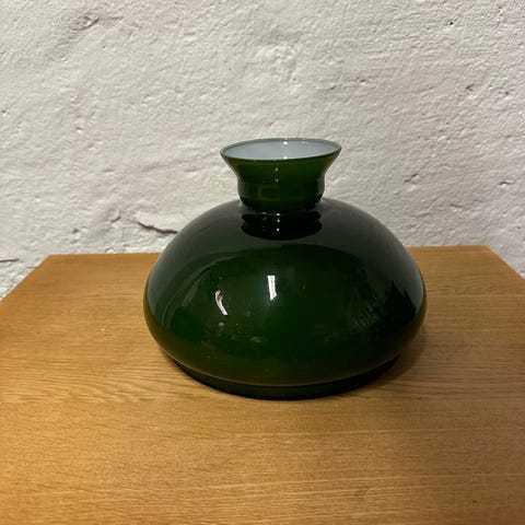 Grøn og hvid Holmegaards skærm i glas.