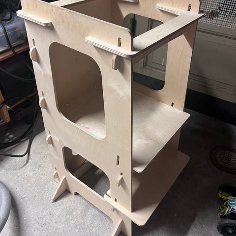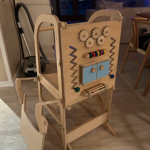 Flot hvidt læringstårn fra pinolino. Er i super god og flot stand. Trin og platform kan justeres. Højde i alt 85 cm. Dybde 44 cm. Bredde 40 cm.