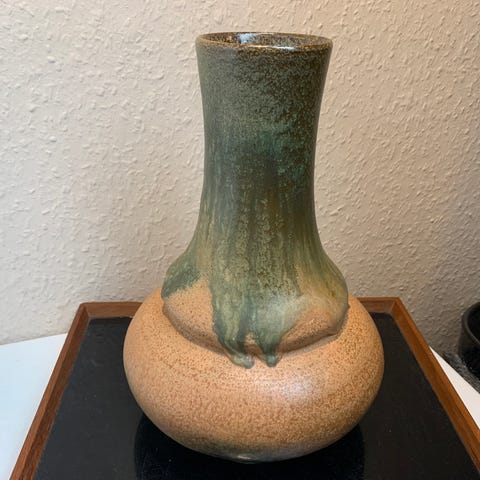 FLOT West Germany sæt med fad og vase fra Ruscha art Keramik. Fin klassisk form på vasen og fin ovalt fad. TOP Ruscha typisk mat lavaglasur i flotte lilla, rosa, grå og sorte nuancer. TOP retro,,,,,!! Begge dele er uden skader eller skår.