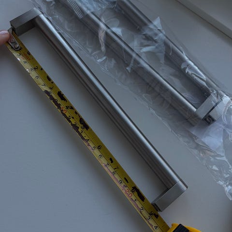 IKEA greb i rustfrit stål til møbler. kan bruges til skabe og skuffer. Materialet er rustfrit stål, hvilket giver et moderne og holdbart udseende.