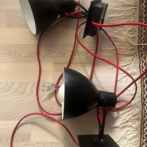Tre røde væglamper med magnet