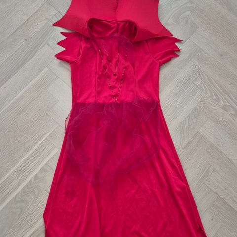 Djævledragt med horn på hætte. Størrelsen er 140 men den er lille i størrelsen og kan bruges af børn i 4-7 års alderen