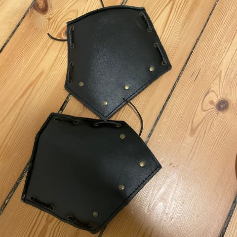 Sort nittet ringbrynje der vejer cirka 17 kg. Den passer til voksen i størrelse M-L. Den er i god stand, men har en meget lille en smule rust på den skulder.