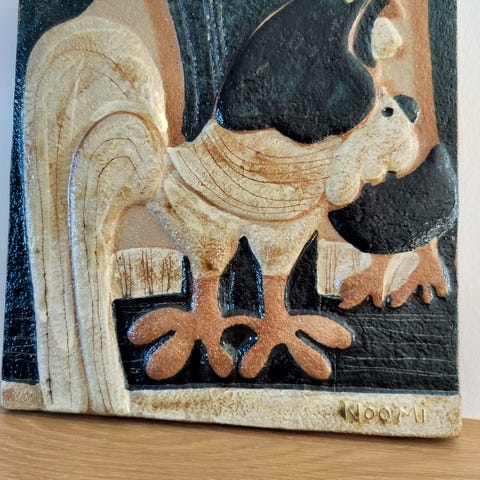 Noomi Backhausen relief med fugl i keramik