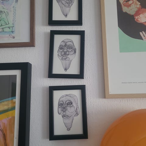 Tryk, Marit Walle, motiv: Mennesker, b: 24 h: 18, 3 skønne små humørfyldte tryk / billeder af Marit Walle, målene er ink ramme.