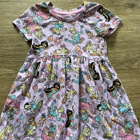 Brugsspor. Fin lysegul prinsessekjole str 4-6 år. Inkl. Gule disney Belle sko.