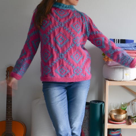 Håndstrikket trøje i smukt grafisk mønster