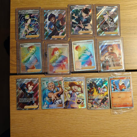 Det er tre forskellige guld trainer Pokémon kort.