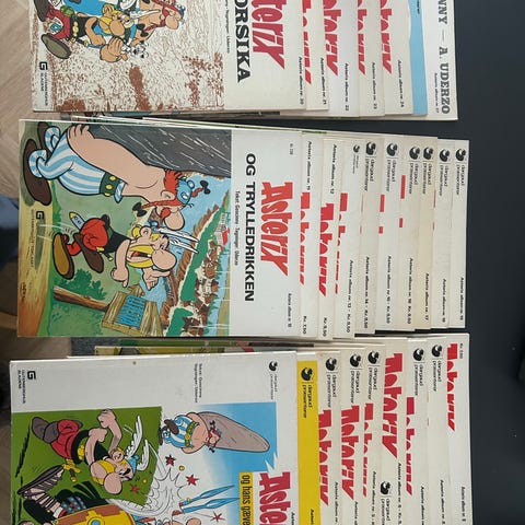 Asterix tegneserieblade med forskellige omslag og historier. Serien indeholder karakterer som Obelix og Asterix, samt temaer fra gallisk kultur og eventyr. Passer til samlere og fans af klassiske tegneserier.