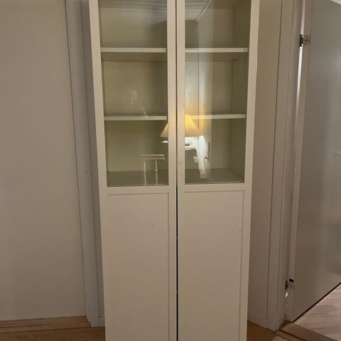 Reolsystemet er brugt, men i fin og velholdt stand. Alt medfølger, inkl. vanger/vægskinner, hylder, skuffemodul med to skuffer samt alle beslag.