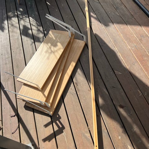 Sælger dette væghængte IKEA SVALNÄS reolsystem i lyst træ/bambus.