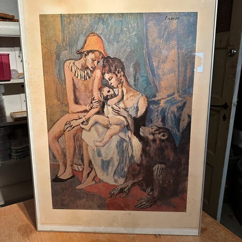 Picasso plakat i beige ramme (glas). 39 x 46 cm.