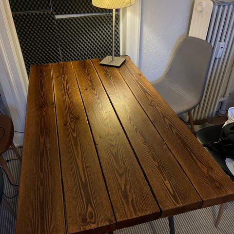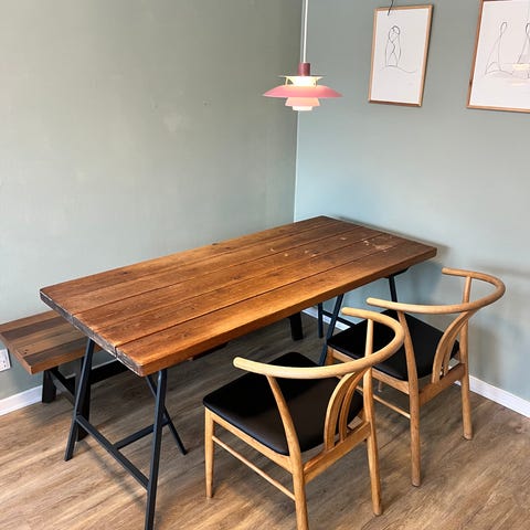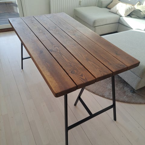 Hipstory planke spisebord som oprindeligt er købt som sort lakeret, men vi har selv givet det hvid lak. Resten af lakken medfølger, hvis det ønskes.