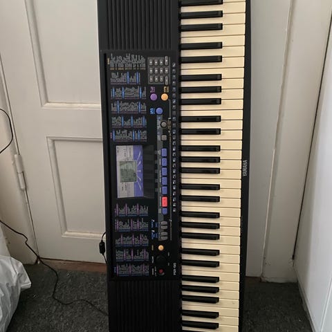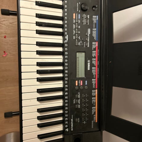 Yamaha keyboard med 61 tangenter, indbygget display, forskellige lydmuligheder. Sælges med tilhørende stativ og fodpedal.