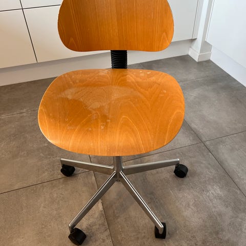 Kontorstol i fin stand af mærket Lagofa. Der kan ses lidt forbrugsspor på bl.a kanten af sædet, Se billedet. Ellers stabil og funktionel.