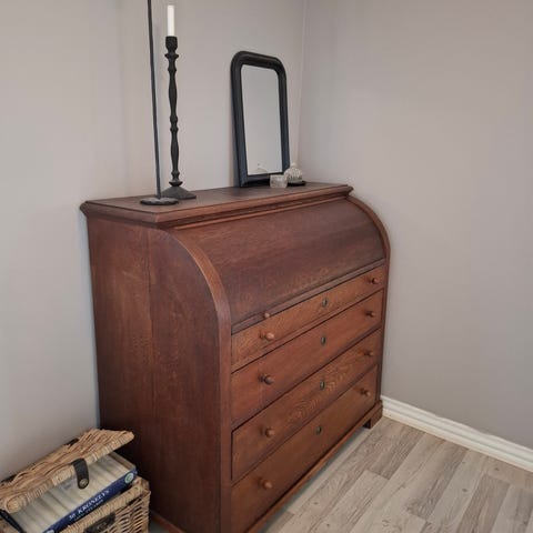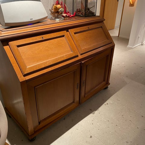 Chatol med skriveklap. Måler 85 i dybden, når skriveklappen er slået ned.