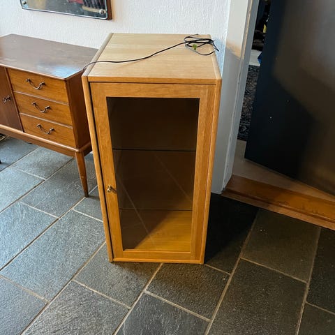 Væghængt vetrine i eg og med glashylde