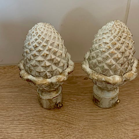 Giv dit hjem et unikt og naturligt præg med disse Knopper, dekorative knop kombinerer funktionalitet og æstetik, hvilket gør den til et oplagt valg for alle, der ønsker at tilføje et strejf af elegant indretningen. metal eller træ i hvid farver. kan hentes for 50 kr. per set, sendes gerne privat