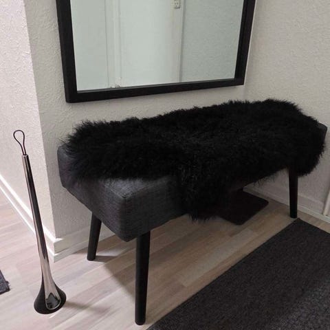 Siddebænk med special tilpasset siddepude i uldstof. God plads til opbevaring.