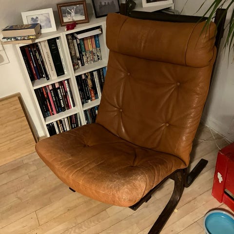 LK Hjelle designet af Ingmar Relling, Model Siesta, sort læder, står 100% som ny
