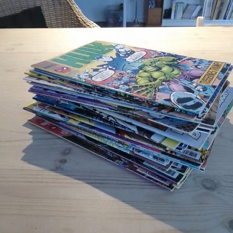 Se til hvis du har nogle spørgsmål. Eller hvis du vil gerne se de over 3000 tegneserier som jeg har til salg. Jeg kan sende dig en pdf liste med priser i kroner. Vær sød at sende mig din mail adresse hvis du vil have listen. Jeg skal nævne at de fleste jeg har er amerikanske tegneserier på engelsk fra Marvel og DC Comics. De to årtier som jeg har fleste tegneserier er fra 1980's og 1990's. Du er velkommen til at kigge på tegneserierne hos mig i Næstved, hvis du er i nærheden.