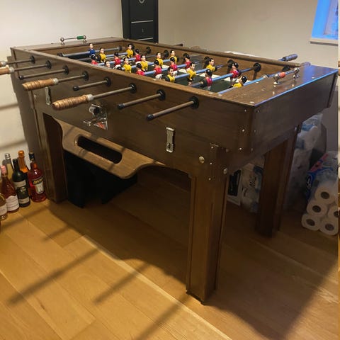 Bordfodboldbord i træ med metalstænger