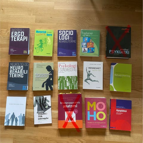 Studiebøger uden eller med meget få overstregninger til ergoterapeutuddannelsen, se pris på billedet.