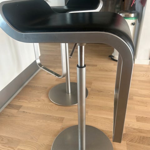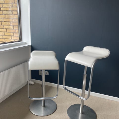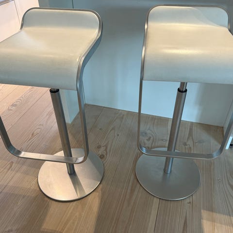 2 stk. Lem barstole fra LaPalma i brun læder. Fin stand, virker upåklageligt. 1500 kr for 2 stk.