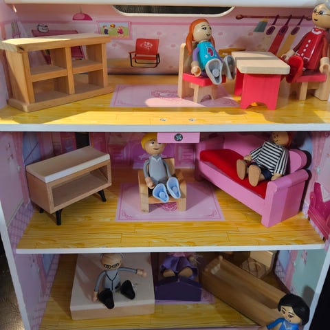 Foldbar dukkehus med elevator.
