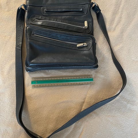 Depeche skuldertaske i sort, økologisk, meget blød skind.