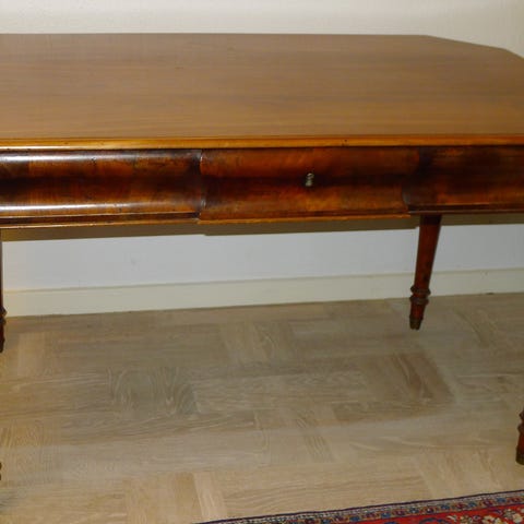 Mahogni skrivebord samt antik stol