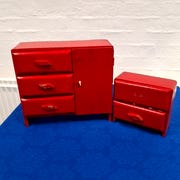 Rødt træmøbel sæt til dukker
