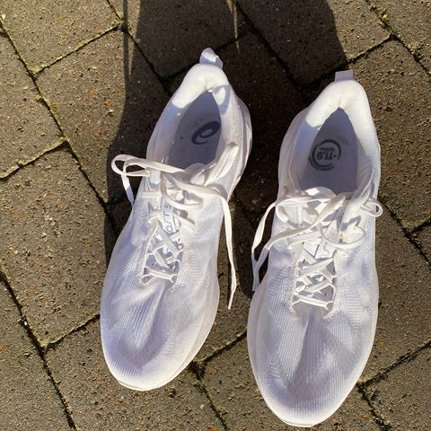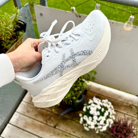 Skoene er 1,5 år gamle, men har kun løbet 40km, grundet skaden og graviditet, så de har kun løbet den første måned af deres liv.. 😉