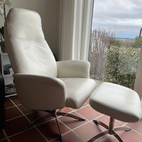 Lys cremefarvet læder, der er flot og velholdt. Ingen slid eller mærker.